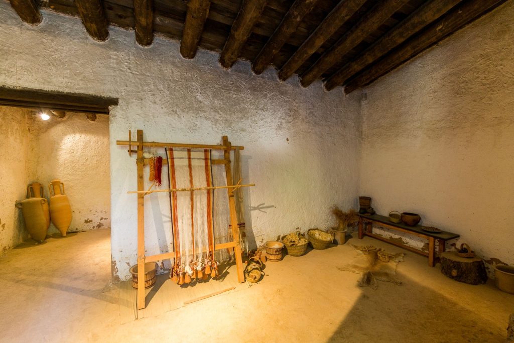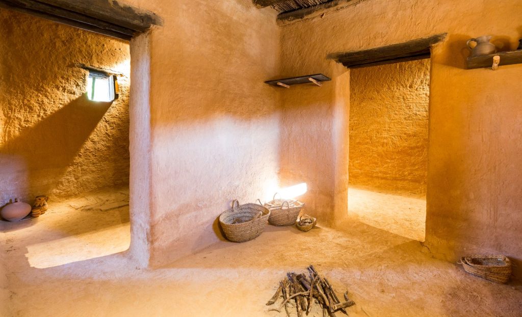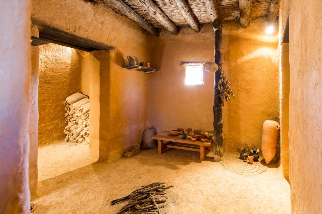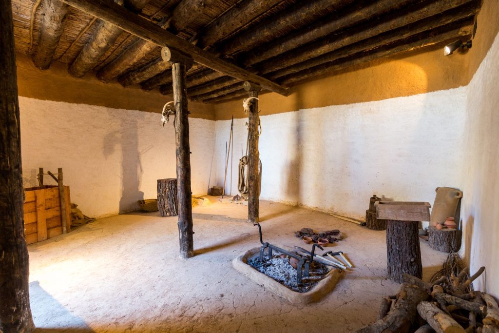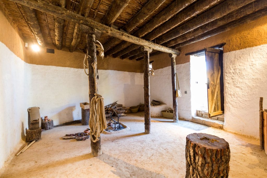 Un dels habitatges és una casa de l’ibèric final amb una teulada que reflecteix la influència romana en les tècniques constructives en aquesta època. La segona és la reproducció d’una casa de quatre habitacions característica de l’ibèric ple, com el taller metal·lúrgic, un gran espai amb els elements propis d’aquesta activitat documentats durant l’excavació.